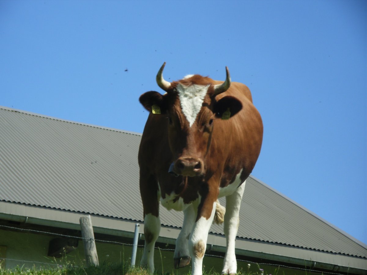 Attention aux veaux près du troupeau ! Une vache peut devenir très protectrice et dangereuse si elle sent sa progéniture menacée : la prudence et le respect sont de mise.